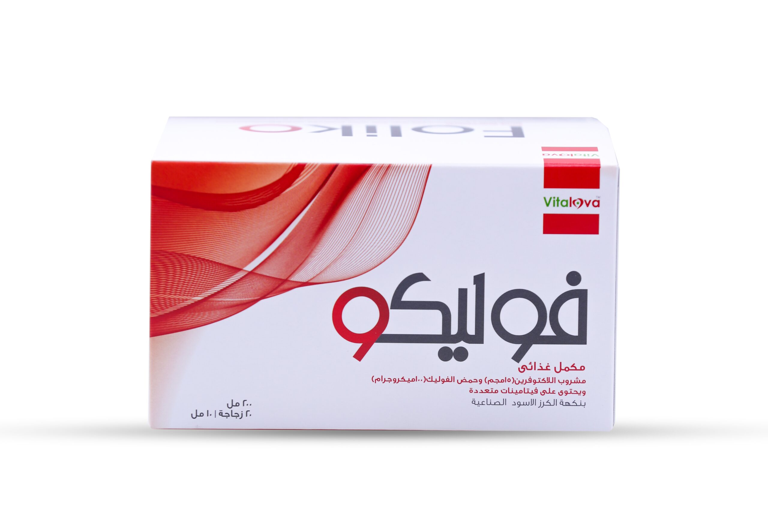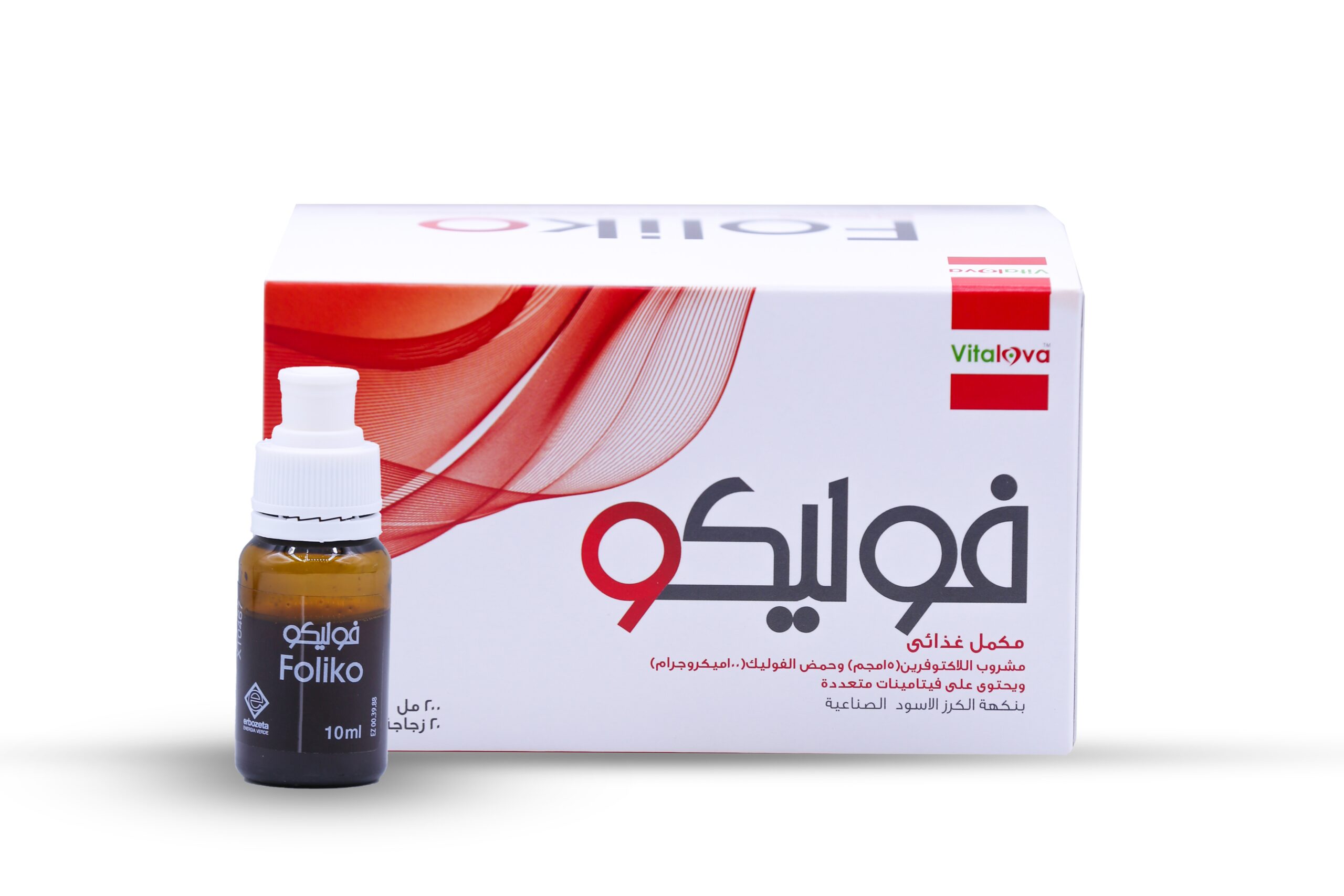 فوليكو هو مكمل غذائي شراب يأتي في 20 زجاجة سعة 10 مل لكل منها بنكهة التوت الأسود اللذيذة مصمم لتعزيز الصحة العامة والحيوية للكبار والأطفال فوق 4 سنوات حمض الفوليك يلعب دورًا حيويًا في بناء الخلايا مما يساعد في الوقاية من السرطان علاج فقر الدم والحماية من أمراض القلب والسكتة الدماغية اللاكتوفيرين وهو بروتين سكري غني بمضادات الأكسدة يعزز المناعة ينظم امتصاص الحديد يحافظ على صحة الجهاز الهضمي ويقضي على البكتيريا الضارة فيتامين سي يدعم جهاز المناعة ويعزز نضارة الجلد بينما الزنك يحافظ على صحة الجلد الشعر والأظافر مجموعة فيتامينات ب ب1 ب2 ب3 ب5 ب6 ب12 تدعم تكوين خلايا الدم الحمراء تمنع العيوب الخلقية وتعزز صحة الجهاز العصبي الجلد والشعر البيتا كاروتين يعزز صحة الجلد والرؤية فوليكو يقلل التعب والإرهاق يحفز تطور الجهاز العصبي ويوفر الحماية من البكتيريا والفيروسات